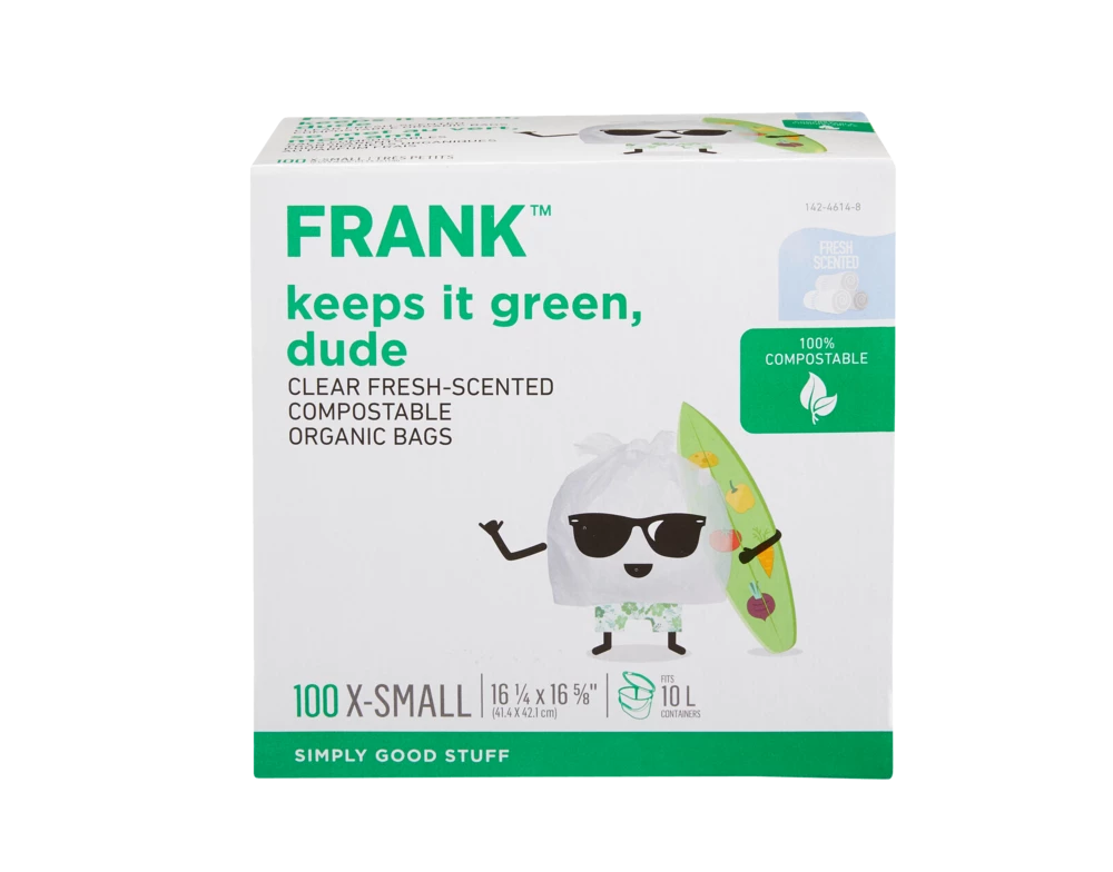- FRANK Fresh-Scented Compostable Organic Waste Bags are 100% compostable