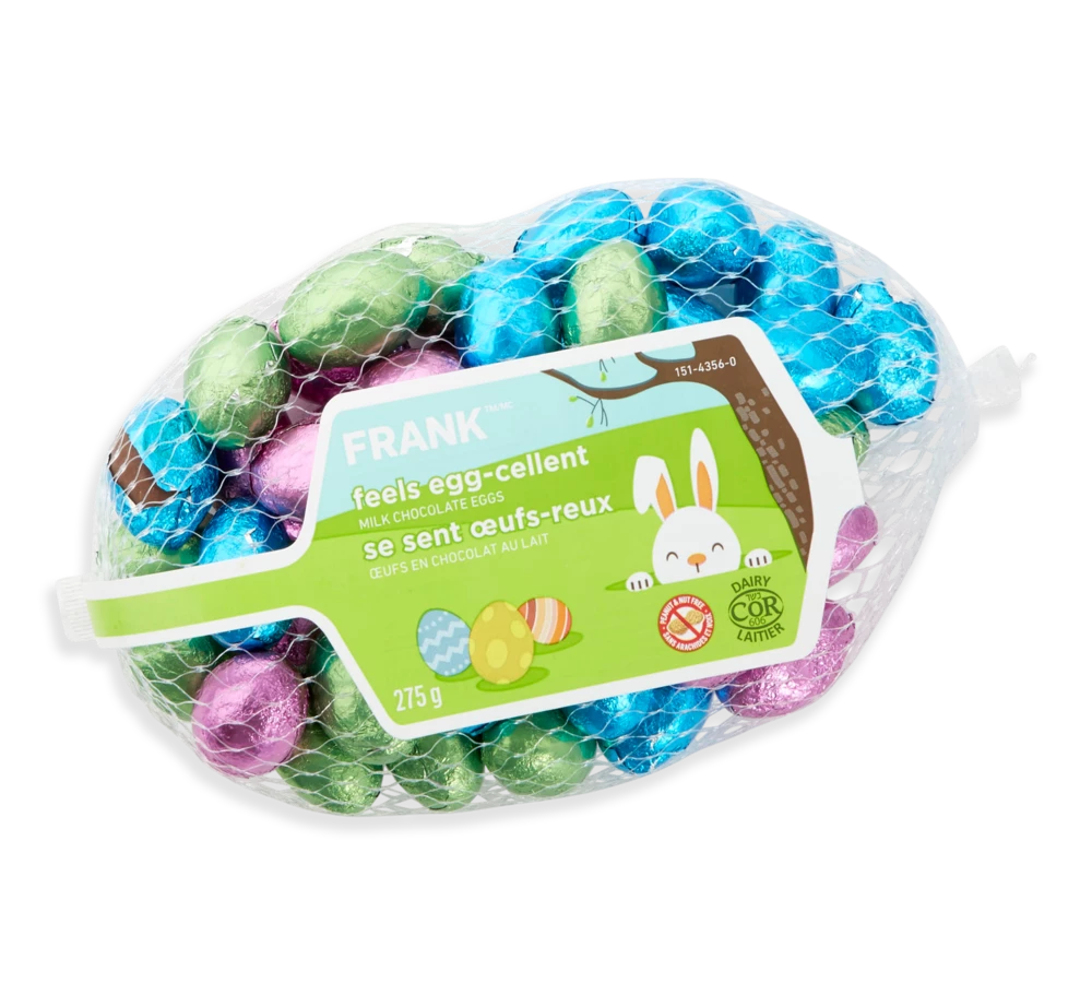 - FRANK Milk Chocolate Eggs are great for snacks, sharing and Easter festivities