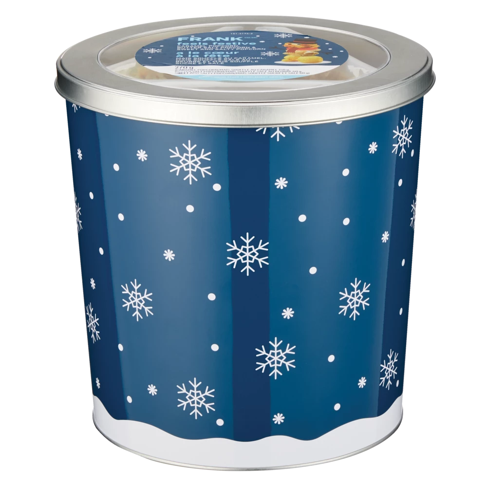 - FRANK Popcorn Tin can be re-purposed as a decorative piece