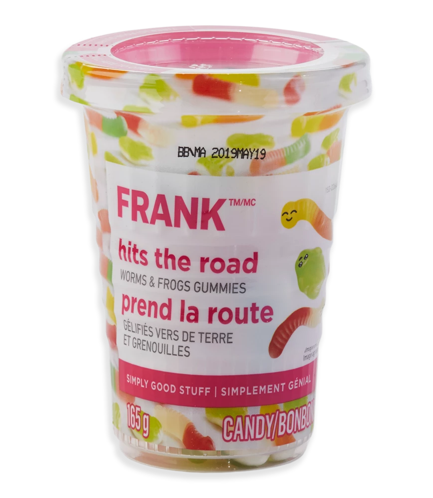 - FRANK Worms and Frogs Gummy Candy Cup makes for a fun and enjoyable road snack for you and your kids