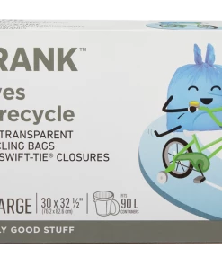 - FRANK Swift Tie Recycling Bags are clear blue recycling bags