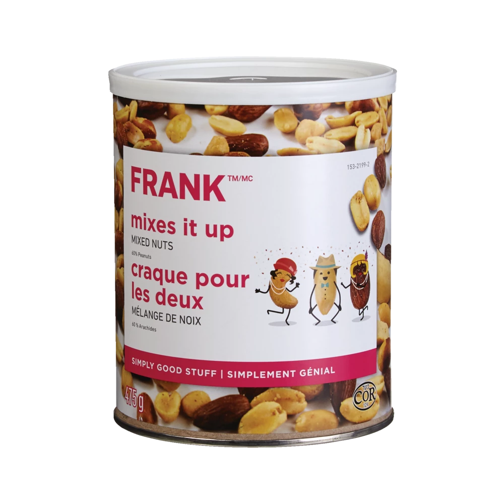 - FRANK Mixed Nuts Tin gives you the perfect mixture of treats for snacking or game night