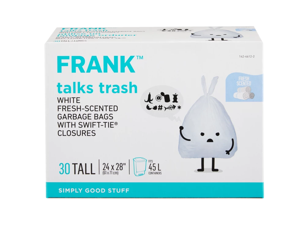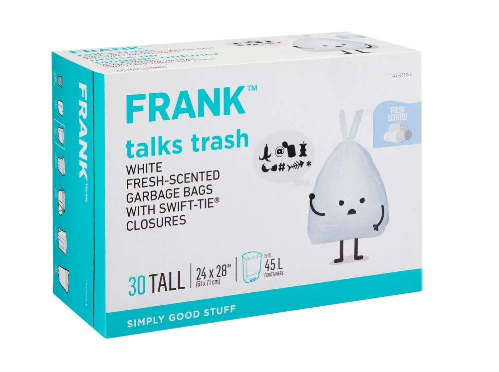 - FRANK White Fresh Scented Garbage Bags neutralize odours to keep your waste bins smelling fresh