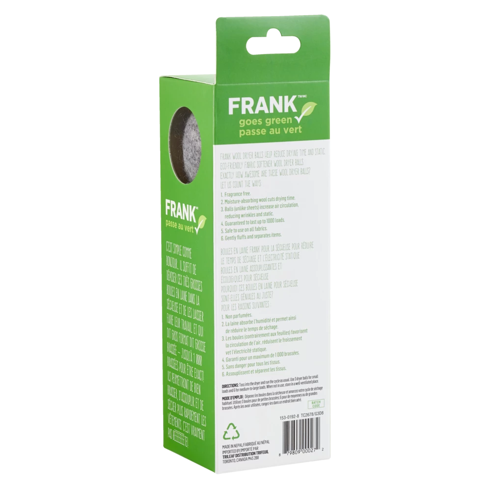 - FRANK Wool Dryer Balls help reduce drying time and static
